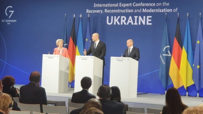 В свою очередь федеральный министр развития Германии Свенья Шульце заявила, что Россию нужно убедить сделать финансовый вклад в восстановление Украины. По ее словам, на данный момент международным правом не предусмотрено ничего, чтобы конфисковать российские активы. Она также заявила, что поддержка в восстановлении страны абсолютно необходима, поскольку Украина находится недалеко от Германии. Это, говорит федеральный министр, сосед по Восточному партнерству, а Германия заинтересована в укреплении всего Восточного партнерства, потому что неизвестно, что делает Кремль, какие у главы Кремля Владимира Путина еще есть планы. По ее мнению, реконструкция Украины — это проект на поколение.