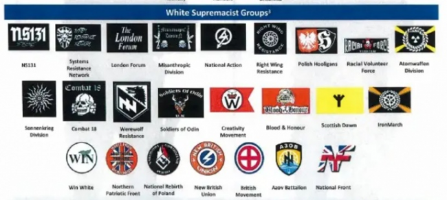 В руководстве по противодействию экстремизму, подготовленном полицией Великобритании, в разделе знаков и символов праворадикальных групп размещен национальный герб Украины.