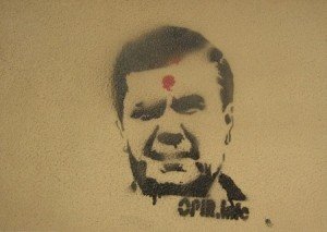Пробитую пулей голову президента Виктора Януковича каждую ночь рисуют в городе Тальном Черкасской области. Изображение появляется в общественных местах.
