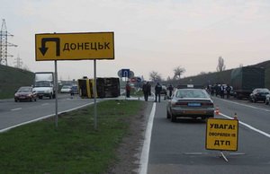 12 человек госпитализированы в результате столкновения пассажирского автобуса с грузовиком Mercedes на участке автодороги «Донецк-Горловка» в Донецкой области