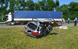 Это произошло на 80 км дороги "Харьков – Красноград – Перещепино". Водитель легковой машины Audi Q7 не справился с управлением и врезался в грузовик Renault Premium, припаркованный у дороги.