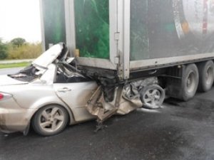 На трассе "Киев-Харьков-Довжанский" водитель Mazda влетел в грузовик SCANIA. На месте погибли 36-летний водитель иномарки и его 37-летний пассажир.