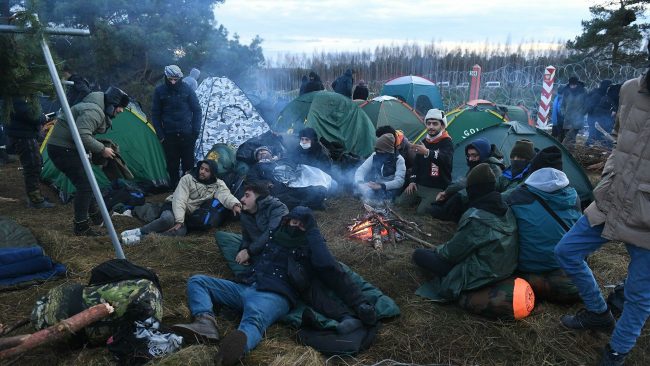 К вечеру мигранты обустроили лагерь рядом с границей. В Польше говорят, что в непосредственной близости от границы может находиться 2-3 тысячи человек.