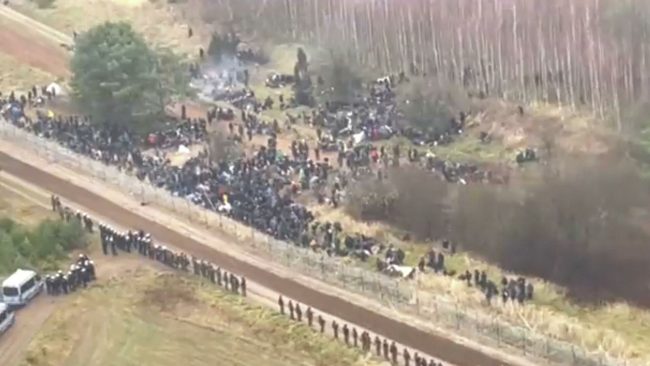 К вечеру мигранты обустроили лагерь рядом с границей. В Польше говорят, что в непосредственной близости от границы могут находиться 2-3 тысячи человек.