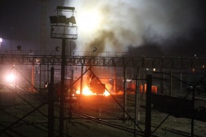 "Этой ночью тоже было не совсем спокойно, где-то в 2:45 на одном из перегонов коксохимического завода также было заложено взрывное устройство. В принципе, ничего глобального не произошло, правда два вагона соскочило с рельс, но остались на шпалах. Повреждена правая колея, один метр", - отметил Райнин, цитирует korrespondent.net.