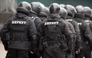 Сотрудники расформированного подразделения «Беркут» вместе с «антимайдановцами» едут к зданию ГУ МВД Украины в Харьковской области.