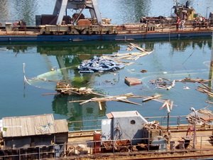 В результате затопления произошел разлив нефтепродуктов, однако работники порта оперативно установили боновые заграждения и задействовали специальные суда для очистки воды.Специалисты ИСРЗ и МЧС выясняют причины происшествия, руководство судоремонтного завода ситуацию не комментирует.