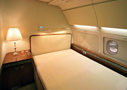 «Обивка салона бежевая. Панели, тумбы, столы, шкафы – из залакированного светлого дерева. Светильники, отделка спального места и ванной комнаты позолочены. Спальное место в самолете обитое дорогой жаккардовой тканью, на ощупь она мягкая. А ее узор – крупные цветы. Спинка кровати украшена позолотой. Над кроватью висит зеркало в золотой раме. В ванной комнате у Президента будет позолоченный кран и раковина из розового мрамора», – утверждает Авиация Украины.
