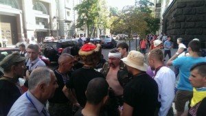 Как известно, тут проходила акция протеста. Люди планировали перекрыть дорогу из ведомства для политиков. Активисты хотели добиться принятия закона о переводе валютных кредитов в гривенные по низкому курсу, однако на них напали неизвестные с дубинками и в камуфляже.