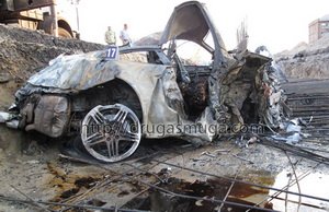 Как сообщает Друга смуга, удар был такой силы, что бетонные конструкции отбросило от места столкновения на несколько десятков метров. А сам автомобиль упал в котлован глубиной около 1,5 метра, пролетев в общей сложности около 200 метров и загорелся.