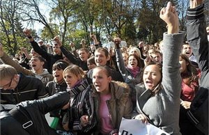 В управлении связей с общественностью подчеркнули, что студентов среди собравшихся – не более 20%, а остальные – так называемые "политические заробитчане".