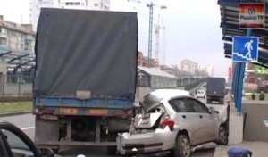 Во время движения у фуры «КамАЗ» оторвался многотонный прицеп, который ударил микроавтобус Mercedes, а затем отлетел в сторону и разбил автомобиль Chevrolet о парапет подземного перехода.