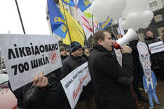 Около 30 представителей молодежных организаций оппозиционных партий «Батьківщина», «Фронт змін», Народного Руха и ВО «Свобода» провели акцию «Давай, до свидания» у здания правительства по случаю отставки Кабинета министров Украины.
