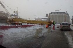 В Киеве у Почтовой площади на проезжую часть упала 30-метровая буровая станция