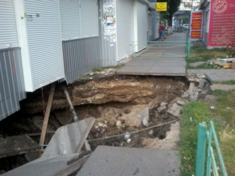 Два ларька практически висят над пропастью – дорожка между ними полностью обвалилась. Также возникла большая яма прямо перед входом в метро. Глубина провалов составила два метра, сообщает газета «Сегодня».