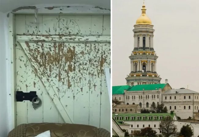 «Что оставляет после себя «русский мир» и его сторонники – последствия говорят сами за себя. На видео – помещение охраны, которым пользовались УПЦ МП. Собственными глазами можете увидеть наручники на двери. Древняя дверь XVIII века, которую использовали как мишень для метания ножей. Об этом сообщил и. о. директора заповедника «Киево-Печерская лавра» Максим Остапенко», – рассказали в пресс-службе.