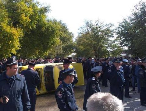 Более того, возле конторы агрофирмы митингующие подожгли старый «Москвич». Таким образом люди требуют остановить беспредел агрофирмы, которая отбирает у них землю.
