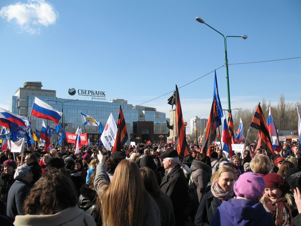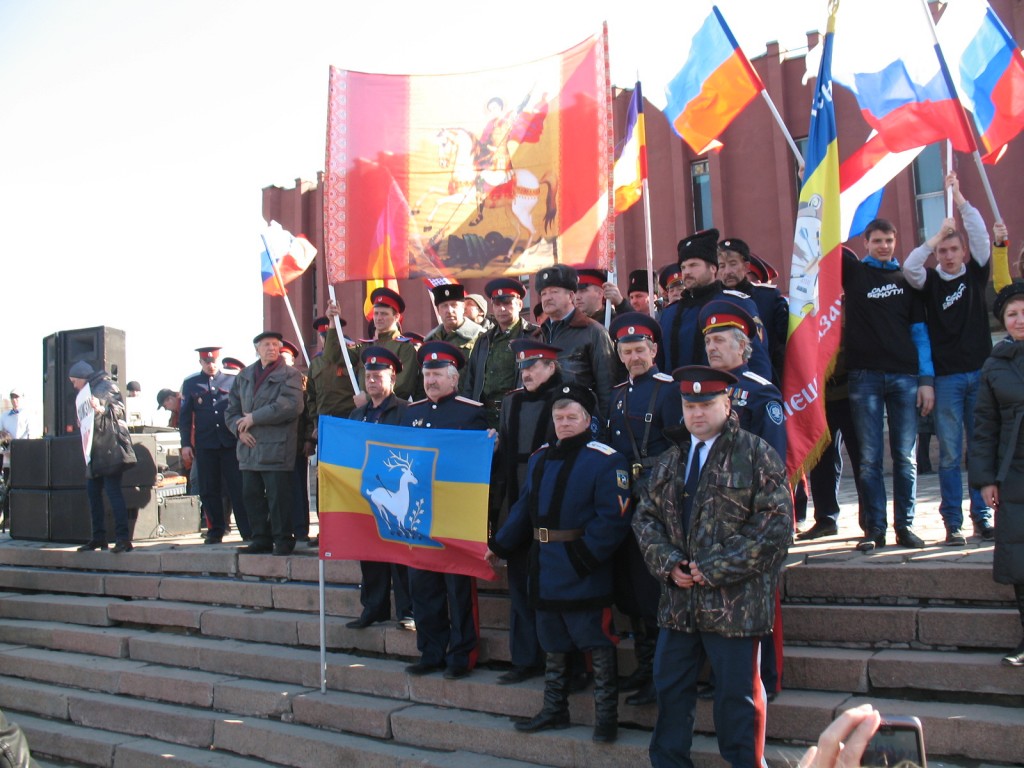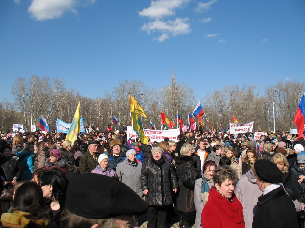 Со сцены выступило не так много человек, зато все их речи, не смотря на краткость, были очень глубокими и затрагивали самые больные темы, например, было сказано, что ни Обаму, ни Тимошенко Россия не боится, и никто не сможет сломить нас. Неоднократно напоминалось – Мы один народ, и никогда не бросим своих братьев на произвол судьбы и не дадим фашистам уничтожить мирных жителей. Народ скандировал: Своих не бросаем. Также сообщили, что создан счет, на который все желающие помочь нашему братскому народу могут перевести средства.