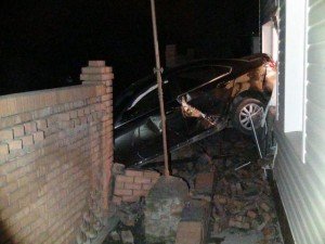 “Автомобиль, казалось, взлетел в воздух, потом зацепил бетонную колонну, затем деревянный забор, далее дорожный знак и, перелетая через улицу, развернулся на 180 градусов, и, “снижаясь”, разгромил кирпичный забор и “приземлился” практически в оконном проеме. Хозяевам дома теперь придется полностью заменить пластиковые окна, сайдинговую обшивку стены и укрепить саму стену”, — рассказал один из очевидцев.