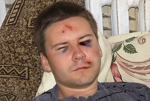 По словам фотографа, на остановке автобуса на него напал неизвестный, который пытался отобрать камеру, однако не смог это сделать. Неизвестный ударил фотографа в лицо, разбил верхнюю губу и убежал.