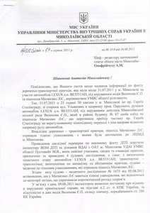Инспектор, проводивший доследственную проверку, не нашел в действиях водителя Волохова состава преступления, предусмотренного ст.286 УК Украины - «Нарушение правил безопасности дорожного движения или эксплуатации транспорта лицами, управляющими транспортными средствами».