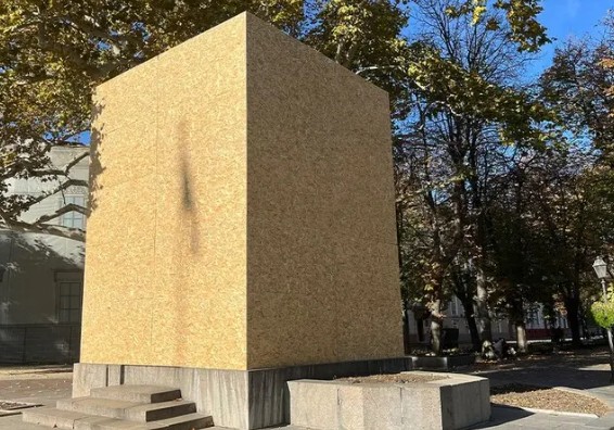 В Одессе памятник русскому поэту Александру Пушкину закрыли ориентированно-стружечными плитами (ОСП) по решению областной военной администрации, чтобы убрать его из публичного обозрения.