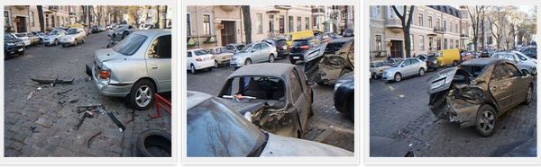 В Одессе четверо молодых людей (два парня и две девушки 19-20 лет) на автомобиле «BMW» протаранили пять припаркованных иномарок: две «Toyota Camry», «Hyundai Sonata», «Toyota Corolla» и «Ford Focus». Это произошло 14 января на улице Еврейская, в квартале между улицами Ришельевская и Пушкинская.