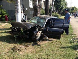 Удар был такой силой, что старенькую машину развернуло, а BMW выехала на обочину и врезалась в дерево.