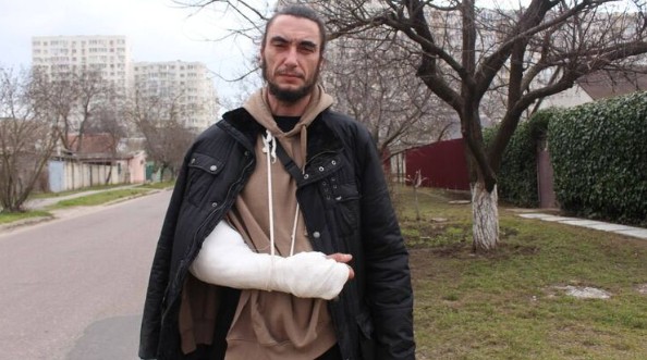 Геннадий рассказал нам то же, о чем коротко сообщил в видеообращении: в понедельник он прогуливался с собакой под домом на улице Костанди. Подлетел микроавтобус, люди в военной форме попросили предъявить документы. Он показал свое удостоверение инвалида войны, но его попытались силой затащить в микроавтобус. Во время попытки похищения ему сломали правую руку, после чего просто выбросили из транспорта и оставили на дороге. Он вызвал скорую, которая отвезла его в больницу, где ему наложили гипс.