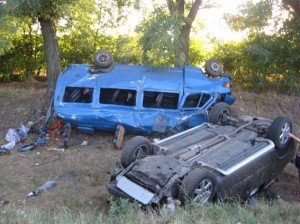 Вчера, 25 августа, в результате столкновения двух автомобилей один человек погиб и двенадцать пострадали.