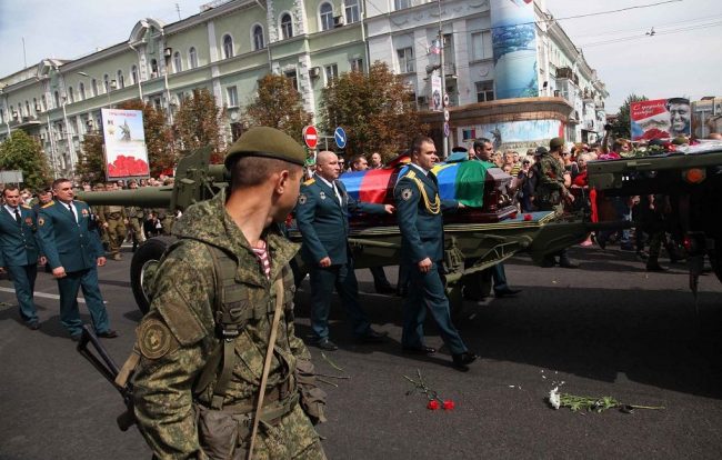 По главной улице города в память о Захарченко прошло траурное шествие, в котором приняли участие более 200 тыс. человек