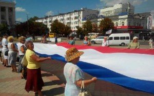 Сегодня в центре крымской столицы на площади Ленина активисты партии «Русское единство» провели акцию, приуроченную ко дню государственного флага РФ.