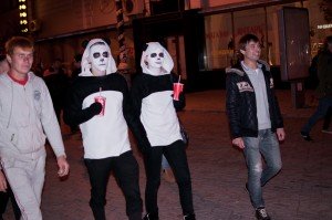 Однако, не все хотели повеселиться… Футбольные фанаты, решили устроить беспорядки. Они вышли в центр города, устроили шествие с лозунгами «Fuck off Halloween», использовали пиротехнику. Одним словом, всячески нарушали порядок.