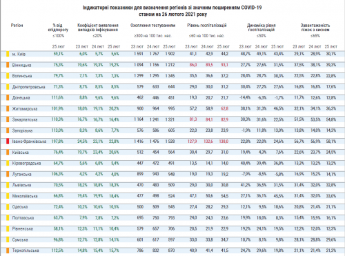 По состоянию на 26 февраля в Украине показатель госпитализаций превышен в пяти областях – Ивано-Франковской (138 на 100 тысяч населения при норме 60), Винницкой (93,1), Черновицкой (86,1), Закарпатской (82,9) и Житомирской (62,8) областях.
