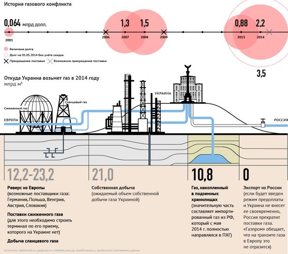 По данным российской компании, просроченная задолженность украинского "Нафтогаза" перед "Газпромом" уже превышает 4,4 миллиарда долларов, из них 1,4 миллиарда — за прошлый год. Российская компания также обратилась с иском в Стокгольмский международный арбитраж с иском к "Нафтогазу".