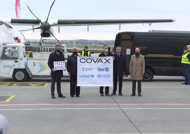 В Украиниу прибыла первая партия вакцины от COVID-19 производства Pfizer/BioNTech — в рамках механизма COVAX. Посадка самолета, который привез в Киев вакцину, транслировалась в прямом эфире.