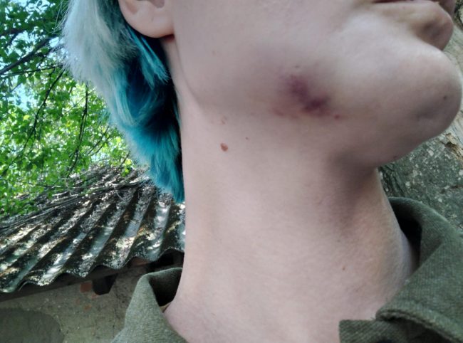 «Мы вышли из магазина, отошли на остановку и собирались звонить на 102. Когда мой муж уже держал телефон у уха, Костя (он же майор Константин Вари) тоже появился на остановке, бросился на моего мужа с кулаками, но почему-то передумал, резко изменил траекторию, подбежал ко мне (я стояла на пару метров сзади от мужчины) и ударил меня в челюсть. Да, женщину. Да, кулаком. Я упала, тогда он склонился надо мной и нанес еще один удар кулаком в левый висок. быстро и неожиданно, мой муж не успел вмешаться, а Вари скрылся», — сообщила пострадавшая.