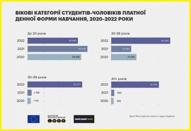 Причины увеличения количества студентов-мужчин призывного возраста связывают с желанием избежать мобилизации, ведь по закону студенты получают отсрочку от мобилизации во время военного положения.