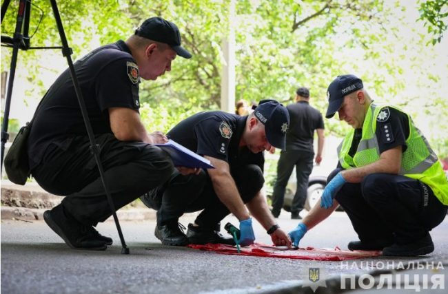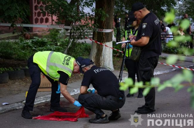 Имя жертвы назвали СМИ. В Департаменте коммуникации Национальной полиции Украины сообщили, что злоумышленника ищут, правоохранители также показали кадры 18+ с места преступления.