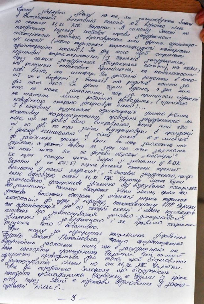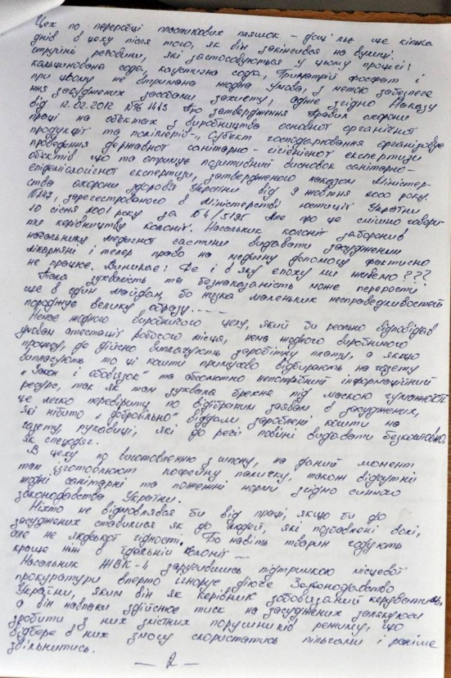 Позднее она рассказала изданию Журнал Житомира о том, что располагает свидетельствами больших и системных злоупотреблений руководством колонии.