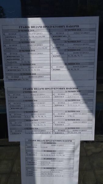 Кроме того, местному жителю удалось сфотографировать объявление с графиком выдачи продуктовых наборов от Товмасяна, где указаны дни, когда должна была раздаваться «предвыборная гречка» (с 4 июня по 6 июля), а также адреса выдачи.