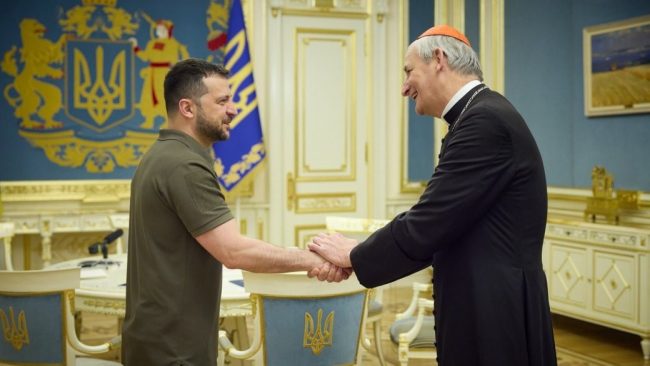 Украину с миротворческой миссией посетил папский посланник кардинал Маттео Дзуппи. Как сообщал Ватикан перед его поездкой, цель мисси в том, чтобы «ослабить напряжение» между Украиной и Россией. В Киеве Маттео Дзуппи встретился с президентом Владимиром Зеленским, который призвал Ватикан поспособствовать реализации мирного плана Украины и подчеркнул, что поскольку война идет на украинской земле, то мир может быть только на условиях Киева. Кроме того, Дзуппи провел встречу с омбудсменом Дмитрием Лубинцом. Он проинформировал папского посланника о нарушении прав украинских детей на временно оккупированных территориях и в России. Также омбудсмен обратил внимание представителей делегации Ватикана на вопрос возвращения гражданских заложников, удерживаемых РФ. Речь идет о десятках тысяч граждан Украины, среди которых есть священники греко-католической и римско-католической церквей. Ранее эксперты считали, что Ватикан мог бы помочь Киеву в вопросе возвращения украинских детей домой, а также в вопросе обмена пленными. В то же время известно, что Дзуппи также собирается посетить Москву. Официальный Кремль якобы дал согласие на такой визит, но его время пока неизвестно.