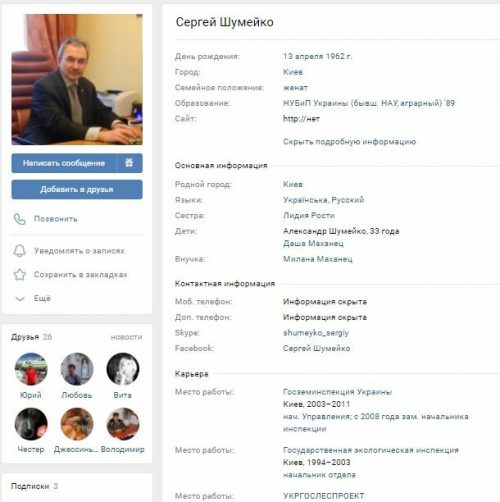 В графе “дедушка” указан Сергей Шумейко 1962 года рождения. Человек с такими же данными является главным консультантом секретариата Комитета Верховной Рады Украины по вопросам аграрной и земельной политики.