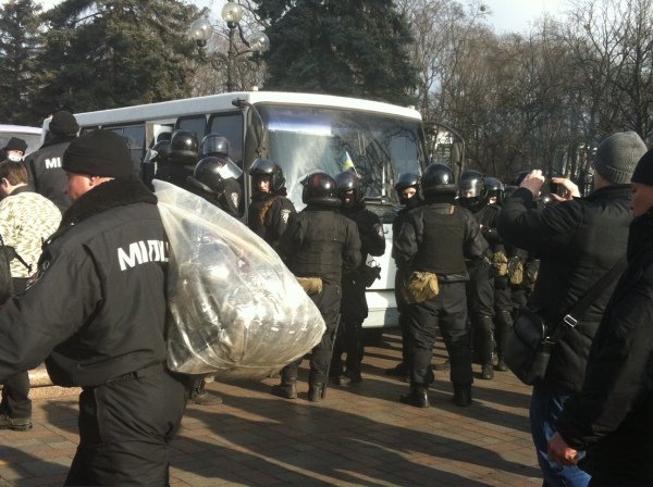 Как сообщает корреспондент INSIDER, за 5 минут отсюда уехало несколько десятков автобусов с ВВ, также из-под парламента забрали два водомета.