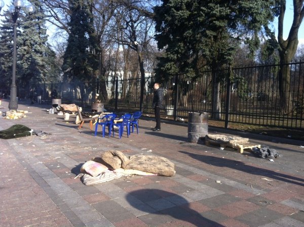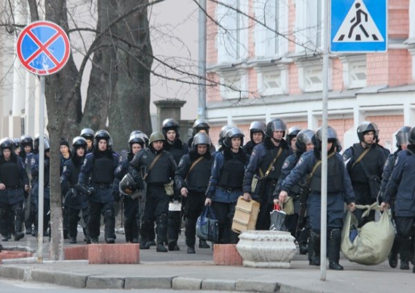 Сообщают, что возле парламента нет даже привычных постов милиции. На пересечении улицы Липской и Шелковичной солдат ВВ забрали еще несколько часов назад.