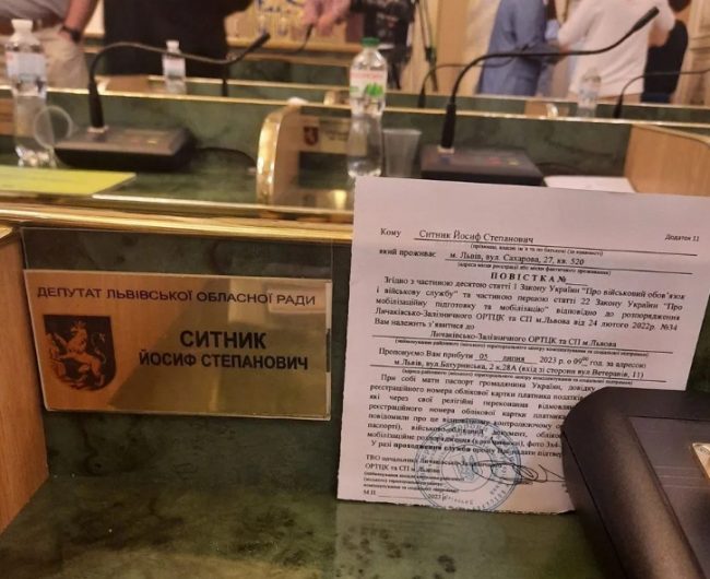 «Сессия Львовского областного совета начинается со встречи с представителями Лычаковско-Зализничного ОРТЦК и СП Львова. Депутатам вручили повестки. Слава Украине!» – написал депутат от «Свободы» Иосиф Сытник в Facebook.