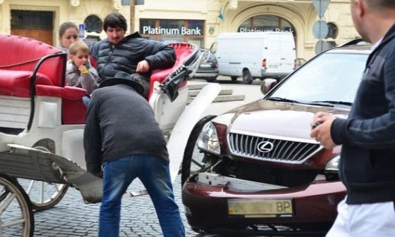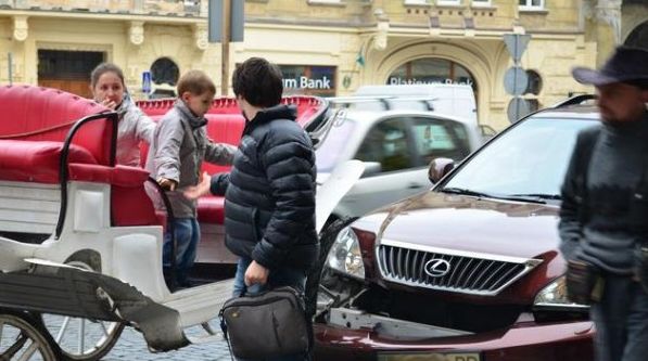 В среду, 16 октября, стало известно, что во Львове произошло курьезное ДТП – джип Lexus c "блатными" номерами серии ВР протаранил карету.