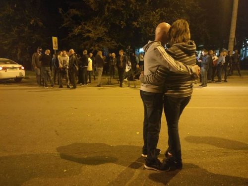 Только около полуночи из-за оцепления на скорости проносится несколько блестящих чёрных машин. До этого оттуда же, грохоча, уезжает военная техника, вытягиваются ещё несколько машин скорой медпомощи. За ними понемногу рассасывается и большая часть толпы, чтобы снова, уже гораздо меньшим составом собраться возле распахнувшего серые железные челюсти городского морга.