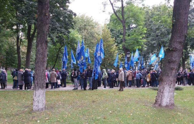 Кроме того, возле парламента собрались люди с символикой партии ОПЗЖ.