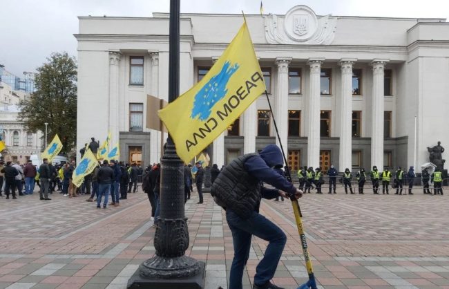 В Киеве в четверг, 23 сентября, возле Верховной Рады Украины начались сразу три акции протеста. Здание парламента окружено сотрудниками правоохранительных органов.
